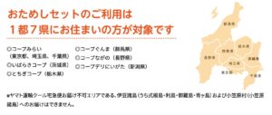 コープデリ | 東京都、埼玉県、千葉県、茨城県、栃木県、群馬県、長野県 |
